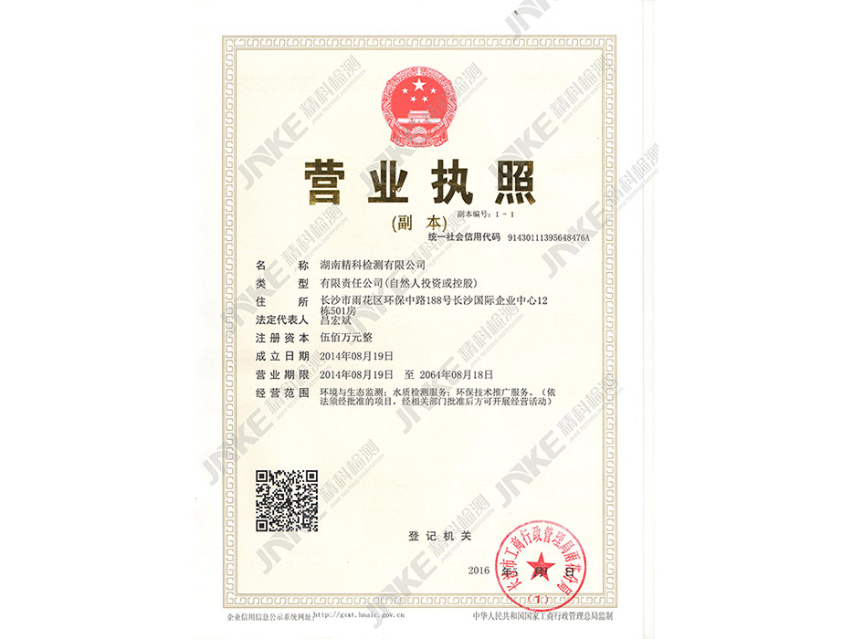 環(huán)境監(jiān)測業(yè)務(wù)能力認定書